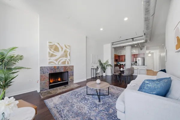 Stunning penthouse in the heart of River North with direct access to Chicago's Riverwalk! This meticulously maintained and freshly painted 2-bedroom, 2-bath home features massive floor-to-ceiling windows that flood the space with natural light and open to a walk-out balcony from the living room-perfect for enjoying the views. The open-concept layout showcases gorgeous wide-plank dark espresso hardwood floors throughout. The chef's kitchen offers granite countertops, stainless steel appliances, and a breakfast bar with seating, all flowing seamlessly into the bright and airy living space. The living area also features a working fireplace, adding warmth and character. The spacious primary suite includes two closets, one of which is a professionally organized walk-in, along with a spa-like bath featuring a dual vanity. The guest bedroom and bathroom are generously sized and ideal for visitors. The home has been freshly painted and is truly move-in ready. Deeded garage parking is available for an additional 35k, and additional storage is included. River Place on the Park is a full-amenity building offering 24-hour door staff, an on-site property manager, a fitness center, and beautifully maintained common areas. Enjoy an unbeatable location just steps from the Riverwalk, dog park, playgrounds, Erie Cafe, East Bank Club, Starbucks, public transportation, and easy access to I-90/94. This is a rare opportunity to own a turnkey penthouse home with iconic Chicago views in one of River North's most desirable locations. Explore the property in 3D-click the 3D tour to walk through every detail.